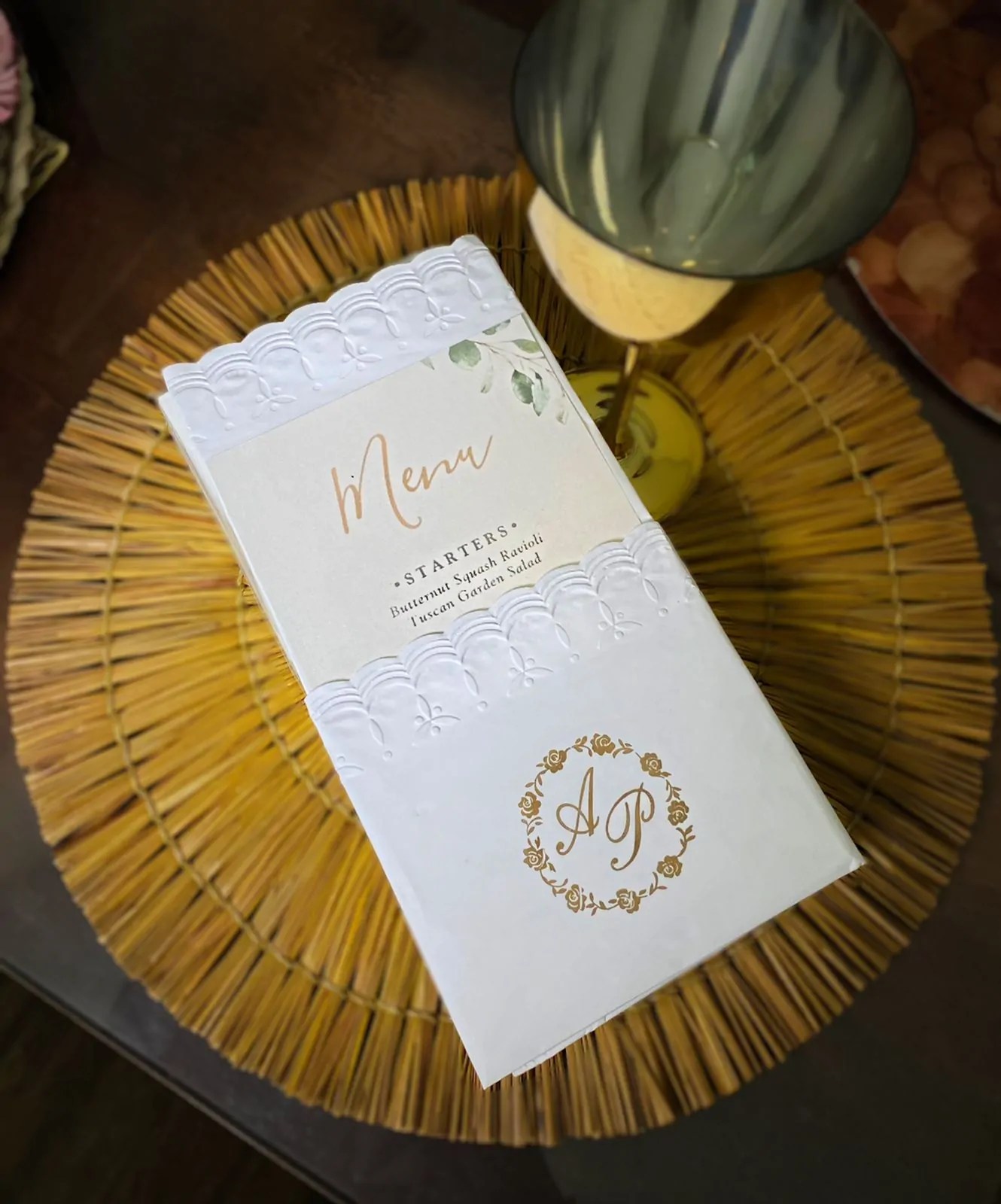 - Dobrado no formato de porta-menu: facilita a organização e a apresentação dos seus menus.